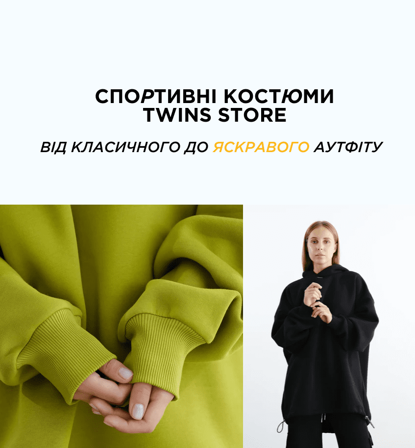 Twinsstore – ваш стильный спортивный костюм, эффектно дополняющий образ. Товары этого украинского производителя созданы для того, чтобы вы чувствовали себя свободно и уверенно, чтобы действительно было комфортно и удобно.
